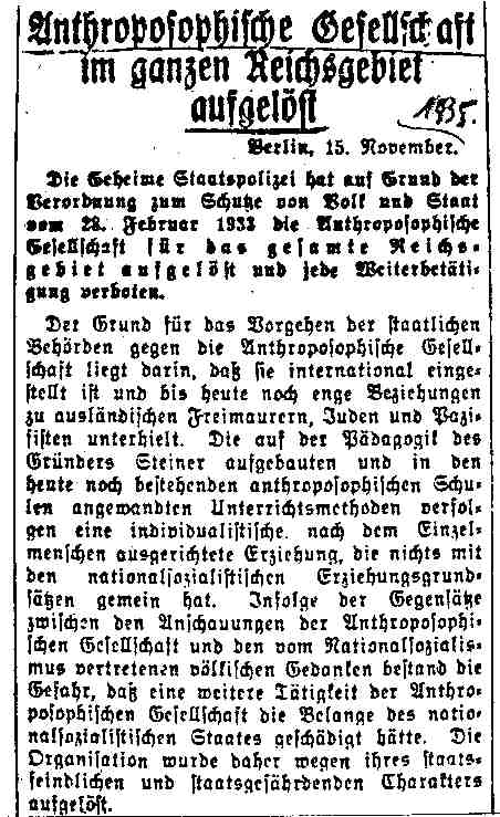 1. November 1935: Die Anthroposophische Gesellschaft wird verboten