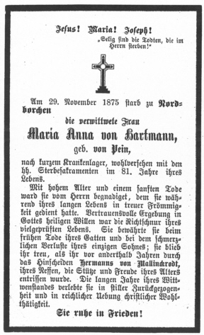 Die im Jahr 1803 geadelte Familie von Hartmann zählt zu den wenigen katholischen westfälischen Beamtenfamilien des Königreichs Preußen. Sie setzte mit dem Übergang in den preußischen Staatsdienst eine alte Tradition in osnabrückischen und paderbornischen Diensten fort.
